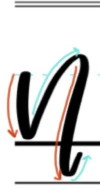 Make a large underturn, starting at the capital height, reaching down to the baseline and climbing back up to the X-height. Finish with a very shallow compound curve across the top of the first stroke.